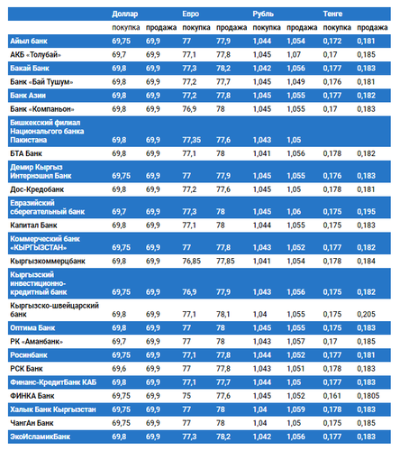 Курс доллара в коммерческих банках Кыргызстана на 29 августа