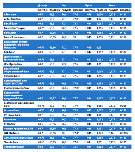 Курс доллара в коммерческих банках Кыргызстана на 30 августа