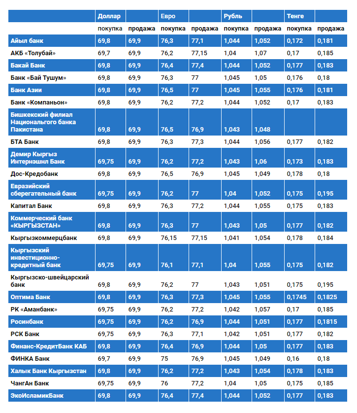 Курс доллара в коммерческих банках Кыргызстана на 4 сентября