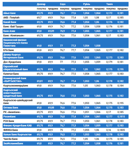 Курс доллара в коммерческих банках Кыргызстана на 6 сентября