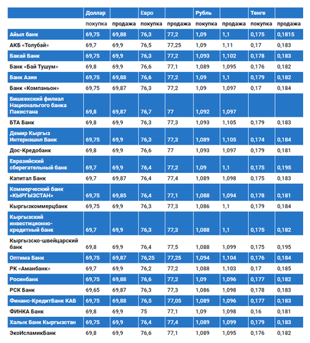 Курс доллара в коммерческих банках Кыргызстана на 25 сентября
