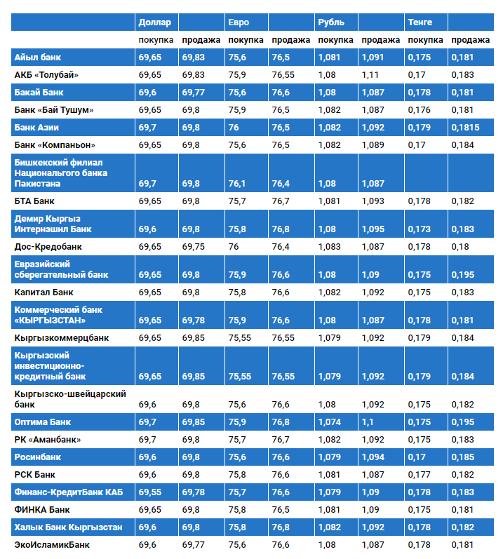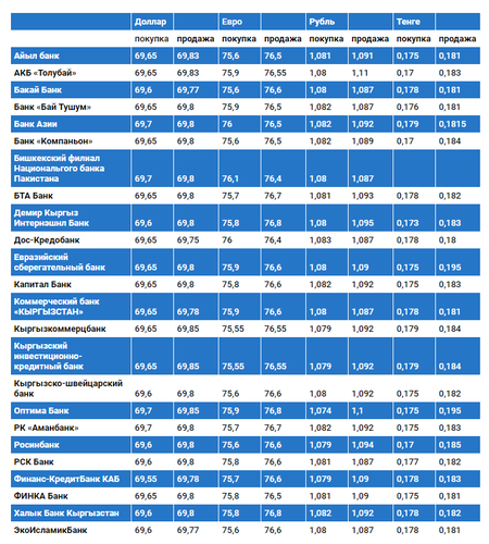 Курс доллара в коммерческих банках Кыргызстана на 27 сентября