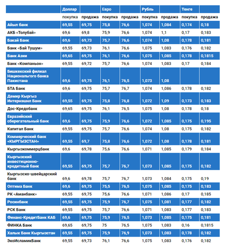Курс доллара в коммерческих банках Кыргызстана на 30 сентября