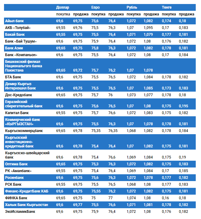 Курс доллара в коммерческих банках Кыргызстана на 1 октября