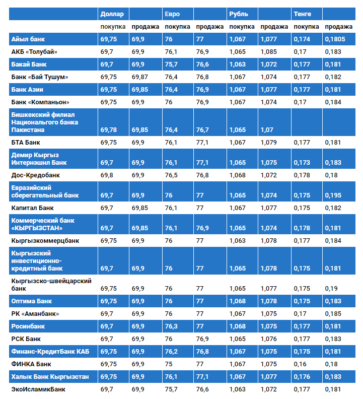 Курс доллара в коммерческих банках Кыргызстана на 3 октября