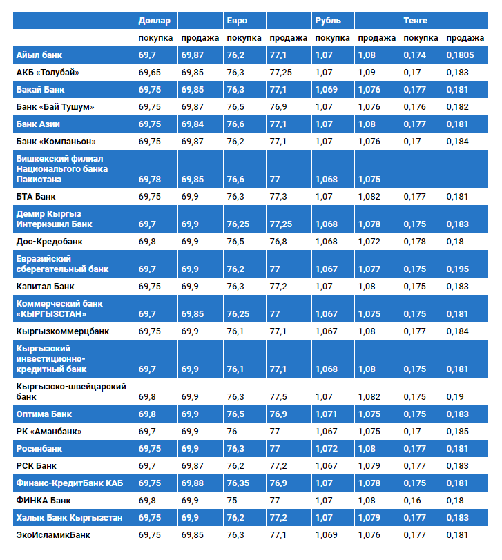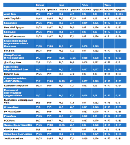 Курс доллара в коммерческих банках Кыргызстана на 4 октября