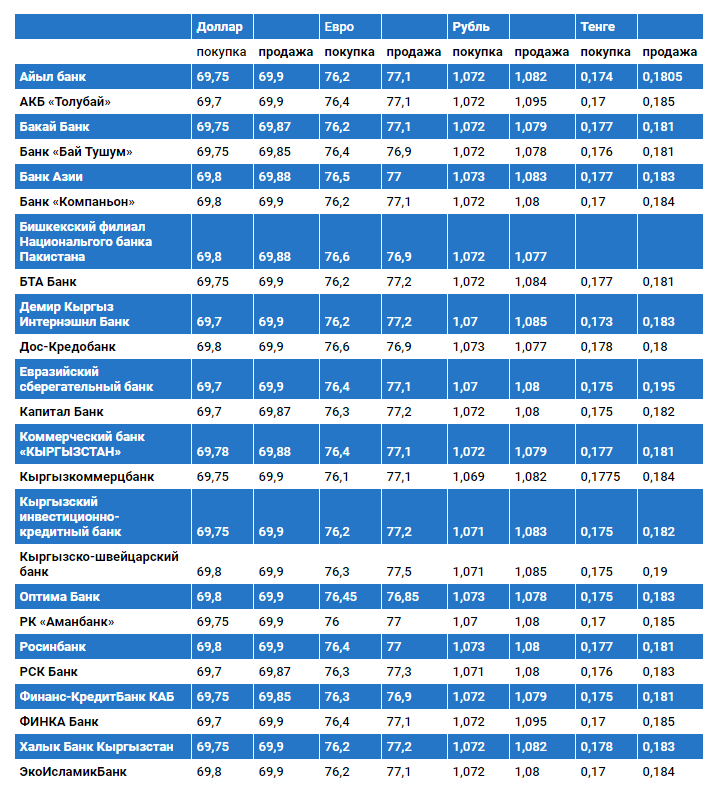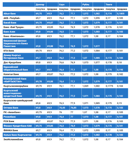 Курс доллара в коммерческих банках Кыргызстана на 8 октября