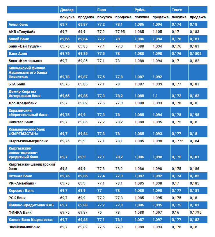 Курс доллара в коммерческих банках Кыргызстана на 18 октября
