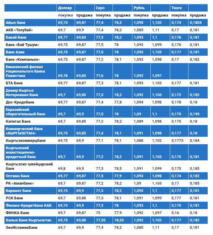 Курс доллара в коммерческих банках Кыргызстана на 23 октября