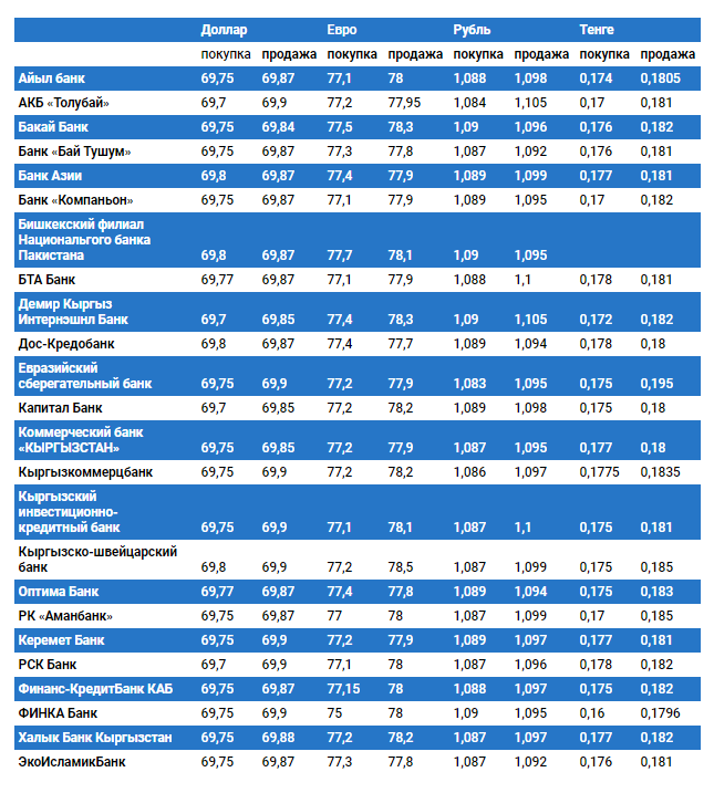 Курс доллара в коммерческих банках Кыргызстана на 25 октября