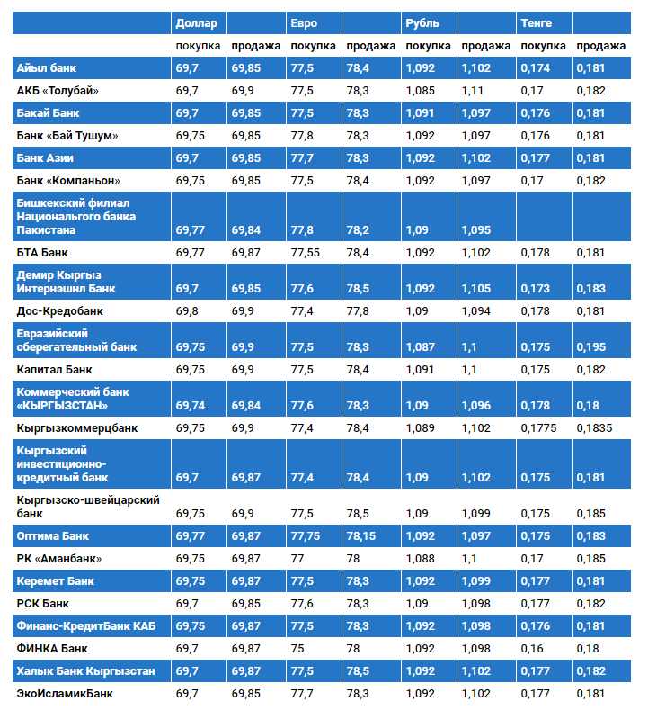 Курс доллара в коммерческих банках Кыргызстана на 31 октября