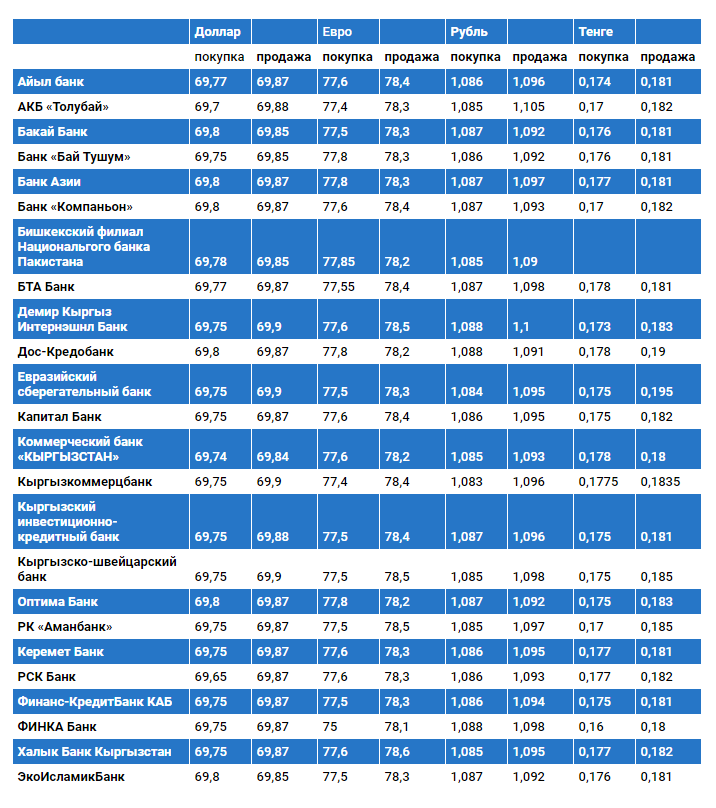 Курс доллара в коммерческих банках Кыргызстана на 1 ноября