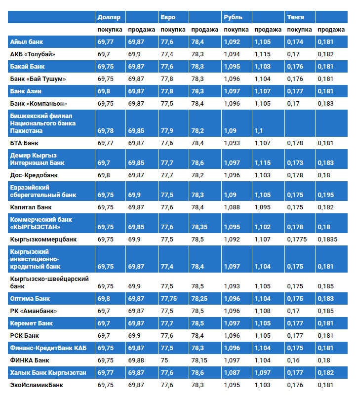 Курсы указаны для наличного обмена валютой. Данные получены с сайтов коммерческих банков. В случае возникновения вопросов по представленным сведениям следует обращаться непосредственно в коммерческие банки.