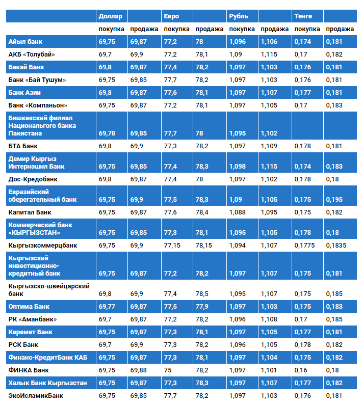 Курс доллара в коммерческих банках Кыргызстана на 5 ноября