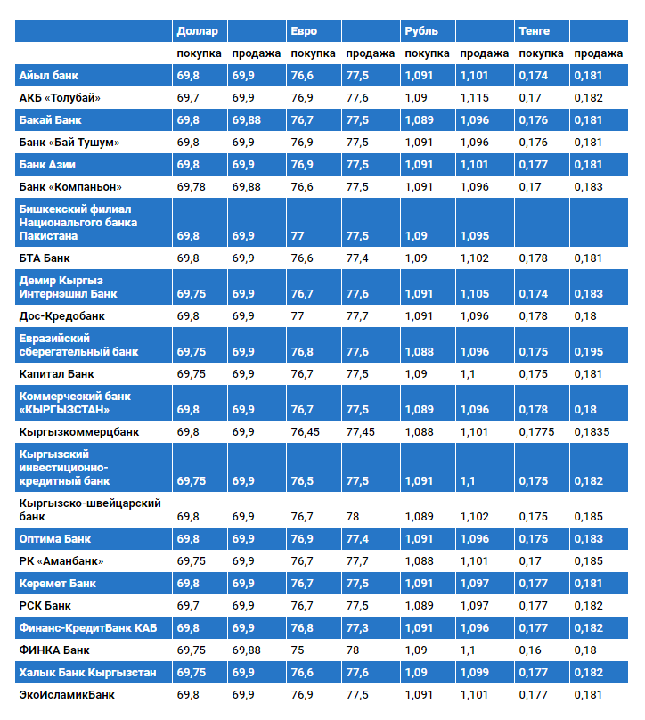 Курс доллара в коммерческих банках Кыргызстана на 12 ноября