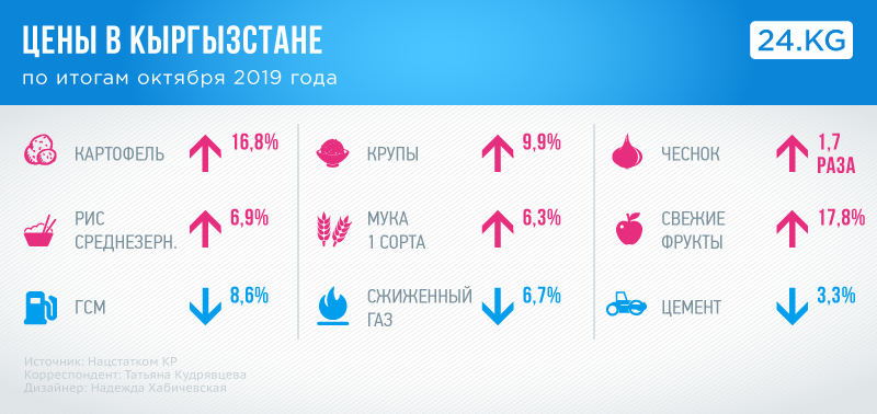 С начала года цены в Кыргызстане выросли на 1,2 процента. Пищевые продукты и безалкогольные напитки подорожали на 2,2 процента, алкогольные напитки, табачные изделия — на 3,2 процента, тарифы на услуги — на 0,5 процента.