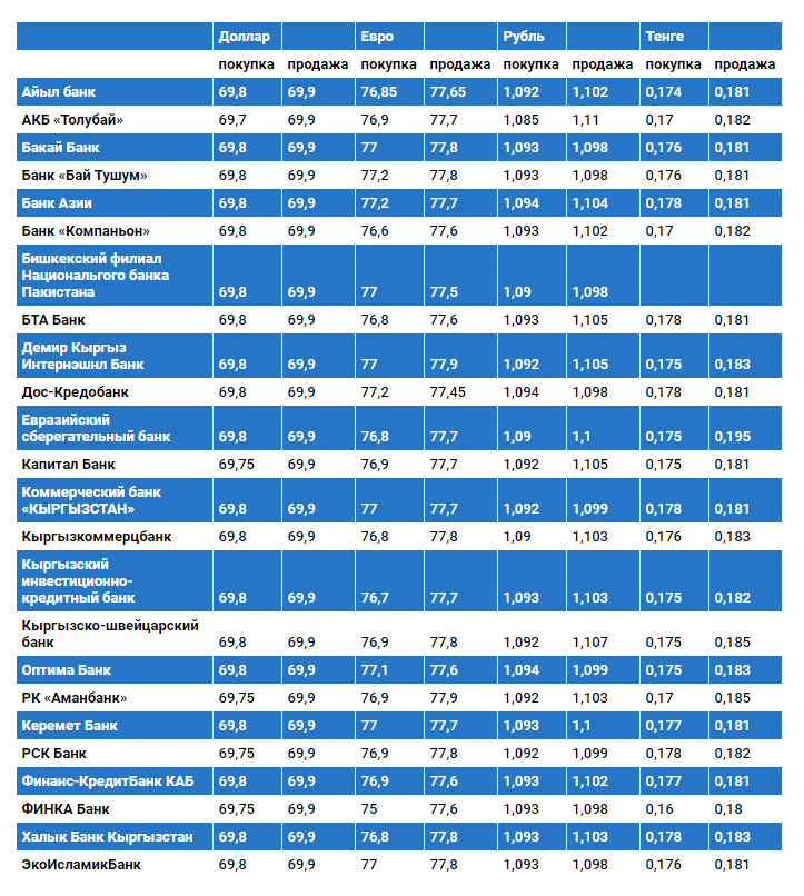 Курсы указаны для наличного обмена валютой. Данные получены с сайтов коммерческих банков. В случае возникновения вопросов по представленным сведениям следует обращаться непосредственно в коммерческие банки.