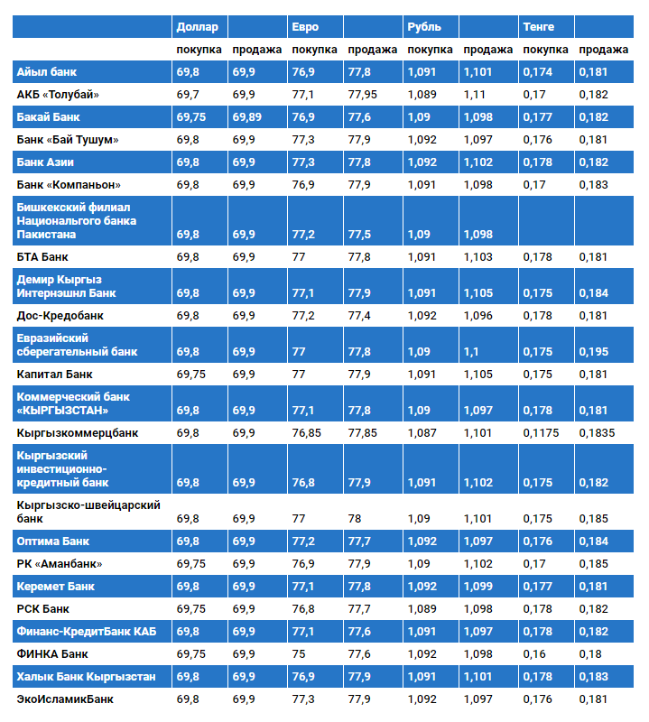 Курс доллара в коммерческих банках Кыргызстана на 19 ноября