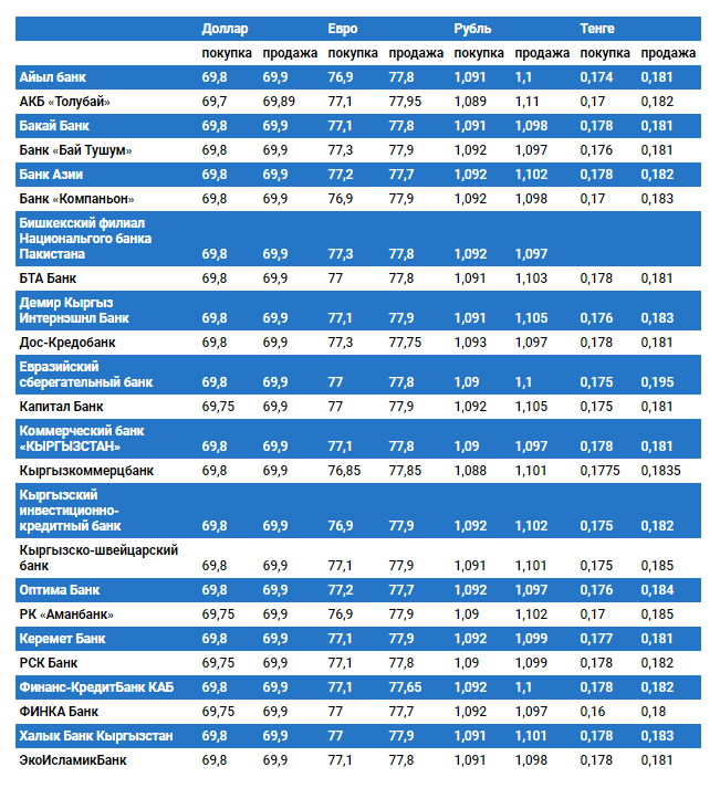 Курс доллара в коммерческих банках Кыргызстана на 20 ноября