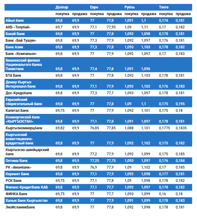 Курс доллара в коммерческих банках Кыргызстана на 21 ноября