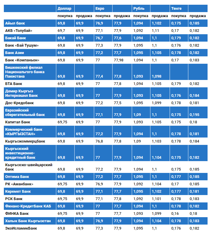 Курс доллара в коммерческих банках Кыргызстана на 22 ноября