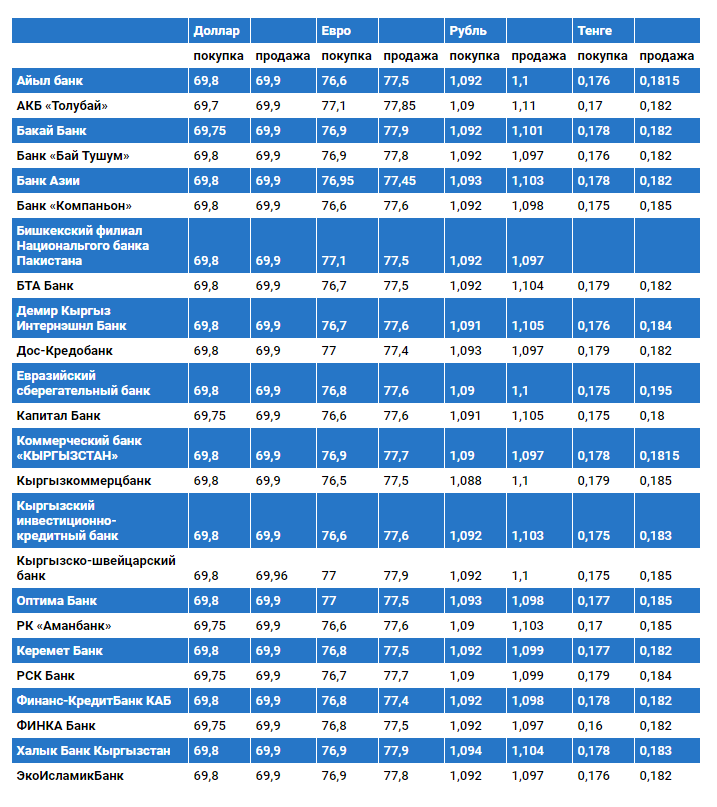 Курс доллара в коммерческих банках Кыргызстана на 25 ноября