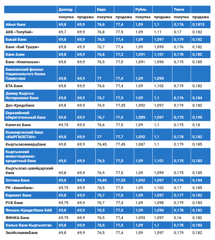 Курс доллара в коммерческих банках Кыргызстана на 26 ноября