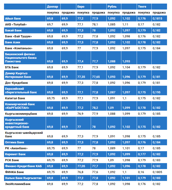 Курсы указаны для наличного обмена валют. Данные получены с сайтов коммерческих банков. В случае возникновения вопросов по представленным данным следует обращаться непосредственно в коммерческие банки.