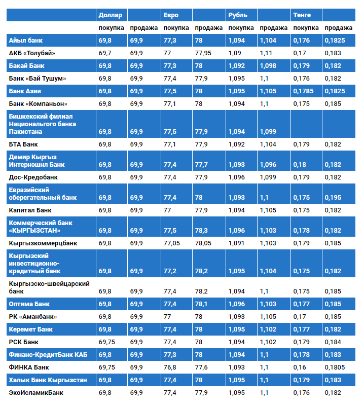 Курс доллара в коммерческих банках Кыргызстана на 6 декабря