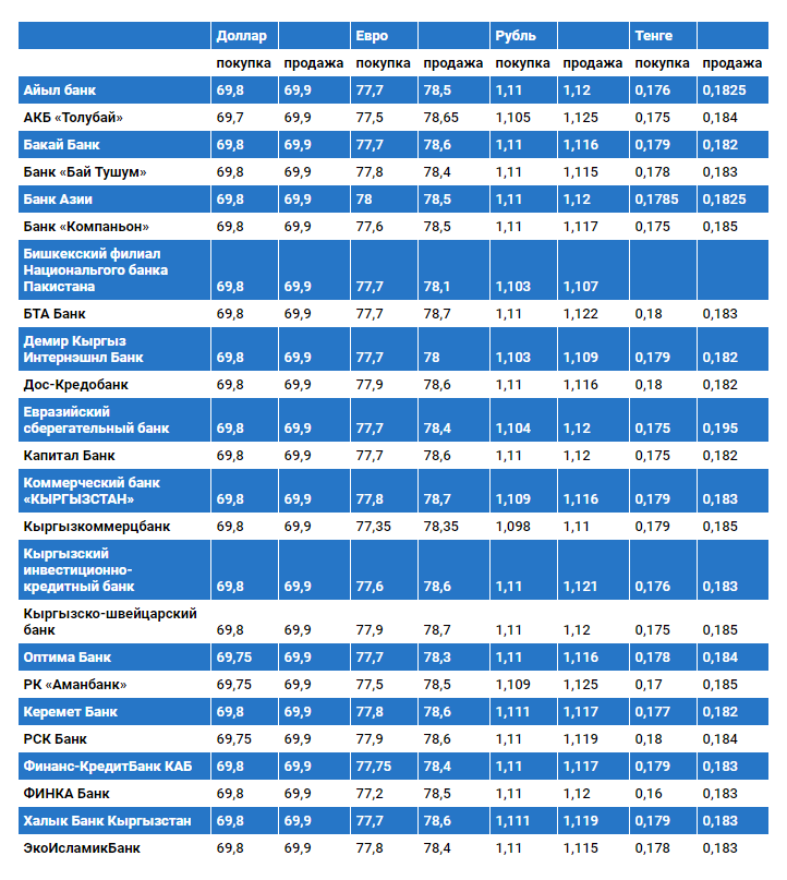 Курс доллара в коммерческих банках Кыргызстана на 13 декабря