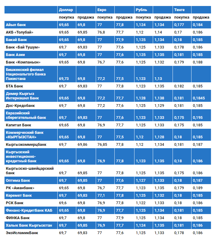 Курс доллара в коммерческих банках Кыргызстана на 26 декабря