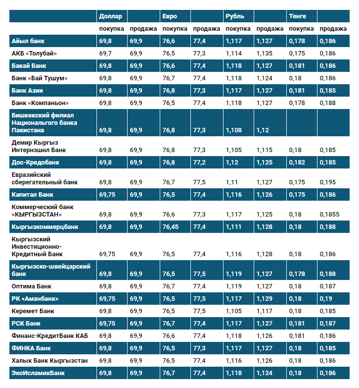 Курс доллара в коммерческих банках Кыргызстана на 29 января