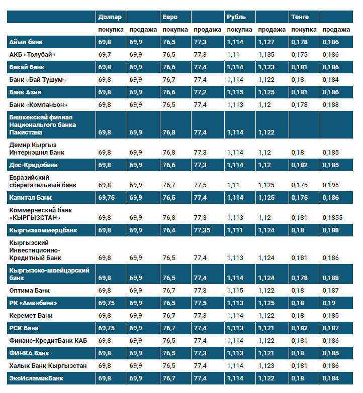 Курс доллара в коммерческих банках Кыргызстана на 30 января