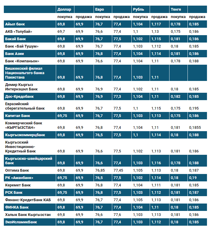 Курс доллара в коммерческих банках Кыргызстана на 31 января