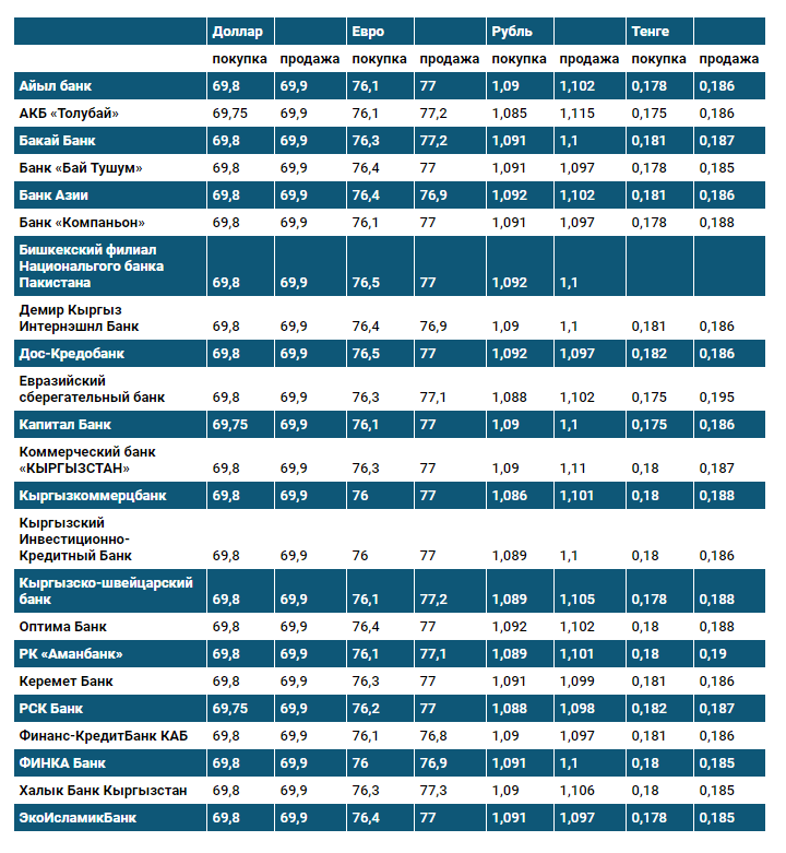 Курс доллара в коммерческих банках Кыргызстана на 10 февраля