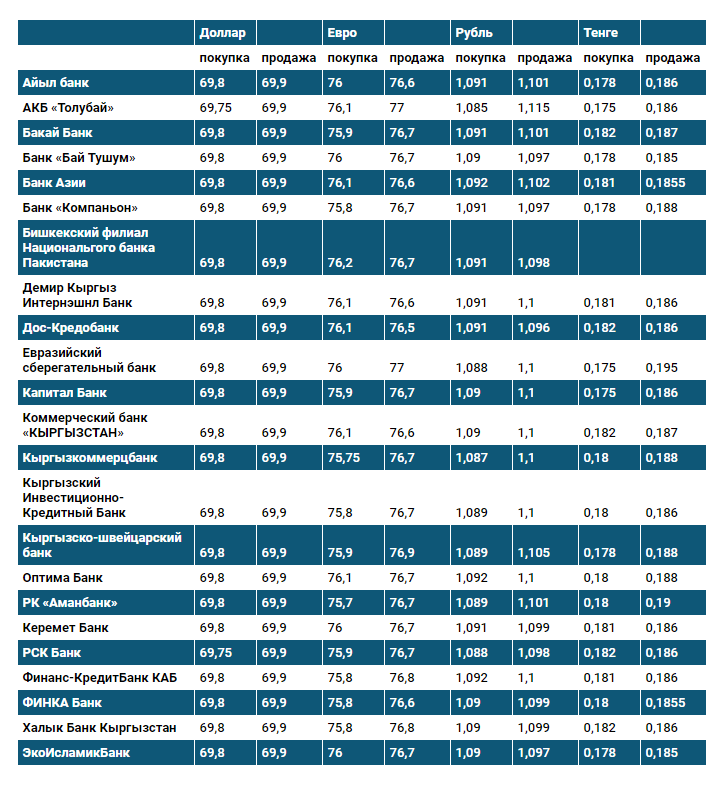Курс доллара в коммерческих банках Кыргызстана на 11 февраля