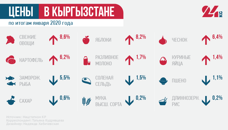 Национальный статистический комитет представил данные, как развивалась экономика Кыргызстана в первый месяц 2020 года. Результаты неутешительные. Рост цен на некоторые виды товаров по итогам января оказался выше, чем увеличение ВВП.