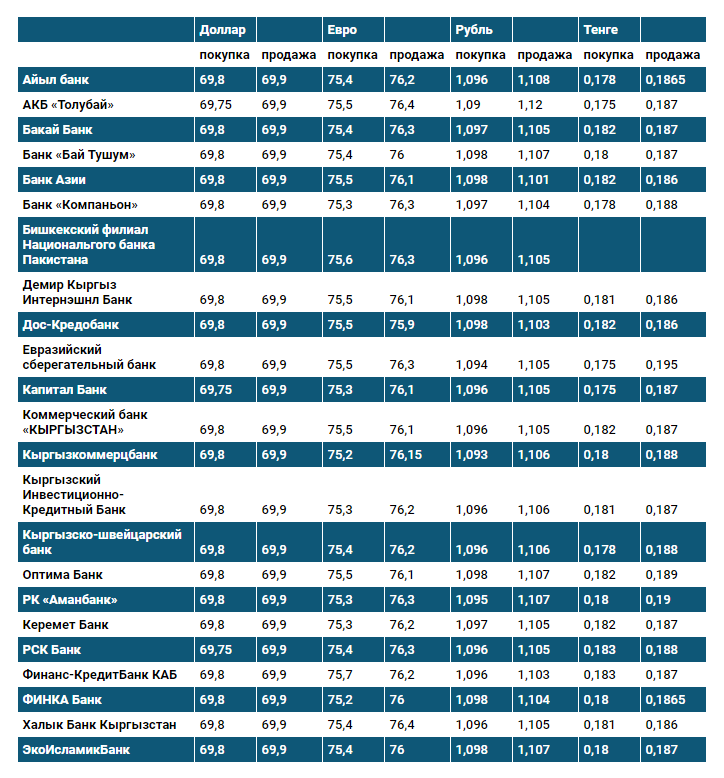 Курсы указаны для наличного обмена валют. Данные получены с сайтов коммерческих банков. В случае возникновения вопросов по представленным данным следует обращаться непосредственно в коммерческие банки.