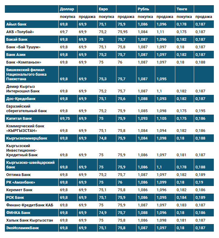 Курс доллара в коммерческих банках Кыргызстана на 21 февраля