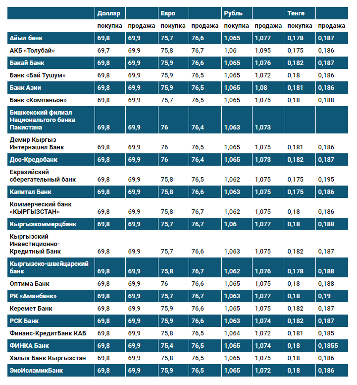 Курс доллара в коммерческих банках Кыргызстана на 27 февраля