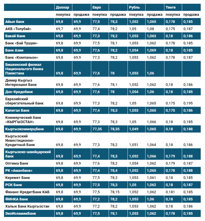 Курс доллара в коммерческих банках Кыргызстана на 5 марта