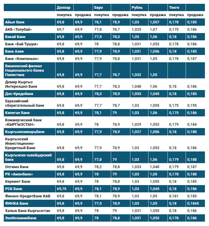 Курс доллара в коммерческих банках Кыргызстана на 6 марта