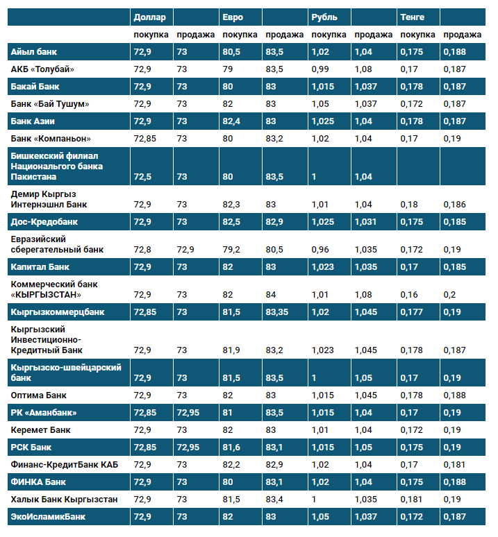 Курс доллара в коммерческих банках Кыргызстана на 11 марта
