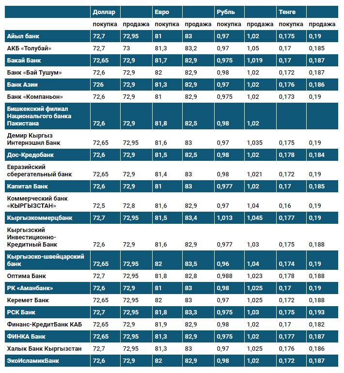 Курсы указаны для наличного обмена валют. Данные получены с сайтов коммерческих банков. В случае возникновения вопросов по представленным данным следует обращаться непосредственно в коммерческие банки.
