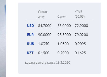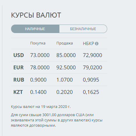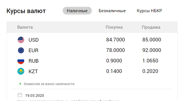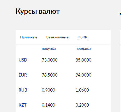 Большинство коммерческих банков страны поменяло курс после 17.30. При этом покупка доллара выросла до 84,4-84,7 сома, а продажа — до 84,9-85 сома. Номинальный курс установлен при этом на отметке в 72,9 сома.