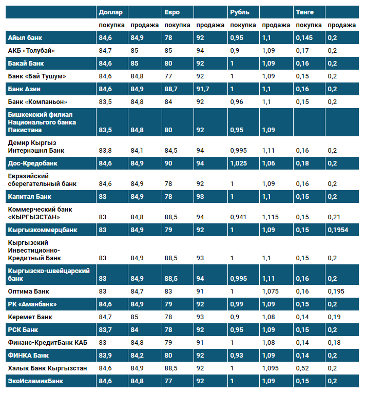Курс доллара в коммерческих банках Кыргызстана на 20 марта