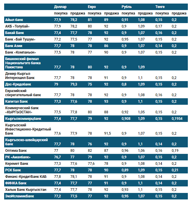 Курс доллара в коммерческих банках Кыргызстана на 22 марта