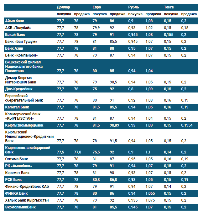 Курс доллара в коммерческих банках Кыргызстана на 23 марта