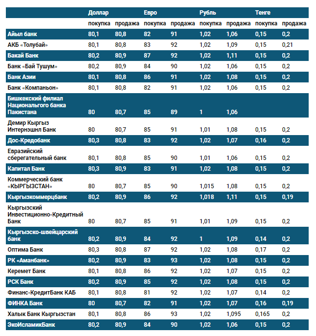 Курс доллара в коммерческих банках Кыргызстана на 27 марта