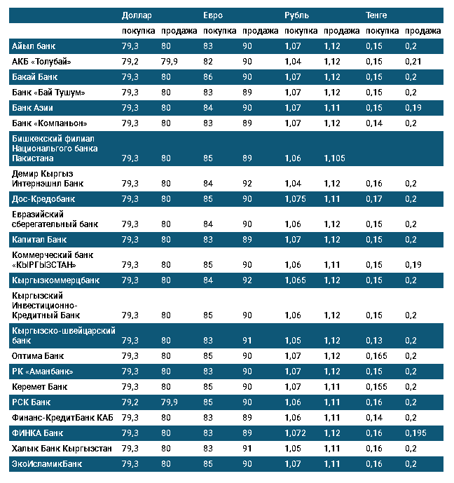 Курс доллара в коммерческих банках Кыргызстана на 15 апреля